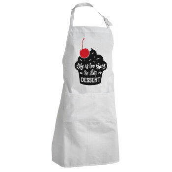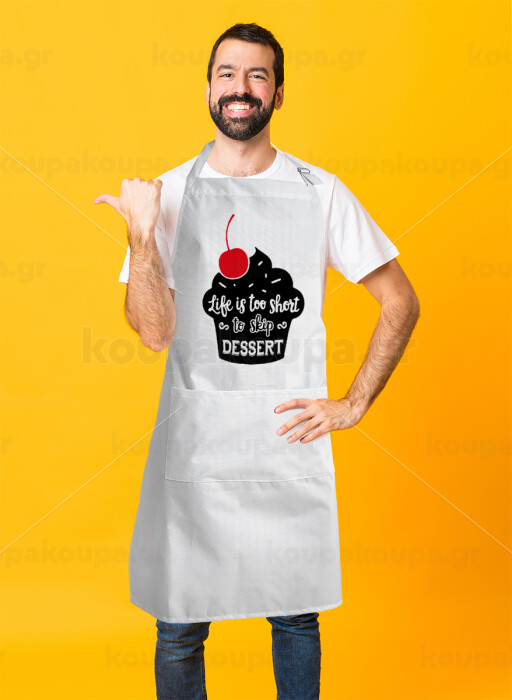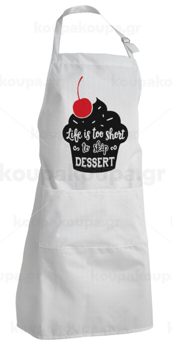Life is too short, to skip Dessert, Ποδιά Σεφ Ολόσωμη Ενήλικων (με ρυθμιστικά και 2 τσέπες)