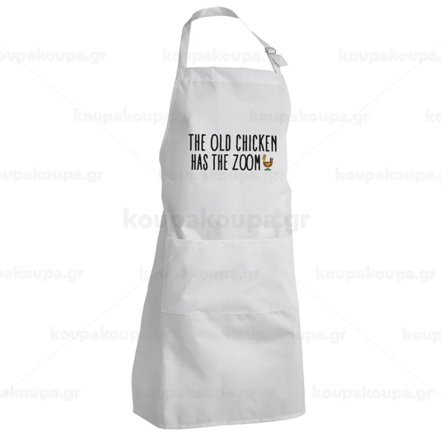 The old chicken has the zoom, Ποδιά Σεφ Ολόσωμη Ενήλικων (με ρυθμιστικά και 2 τσέπες)