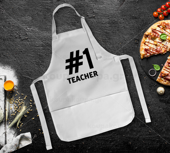 #1 teacher, Ποδιά Σεφ Ολόσωμη Παιδική (με ρυθμιστικά και 2 τσέπες)