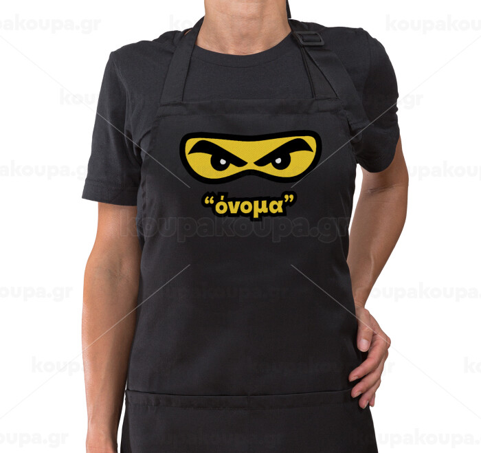 Ninja Eyes με όνομα, Ποδιά μακριά Σεφ ολόσωμη με τσέπες Μαύρη (ΕΝΗΛΙΚΩΝ)