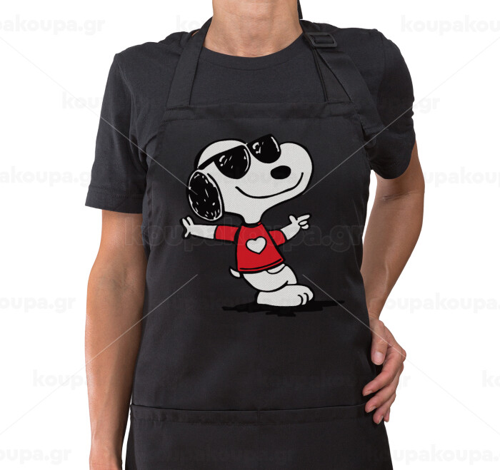 Snoopy καρδούλα, Ποδιά μακριά Σεφ ολόσωμη με τσέπες Μαύρη (ΕΝΗΛΙΚΩΝ)