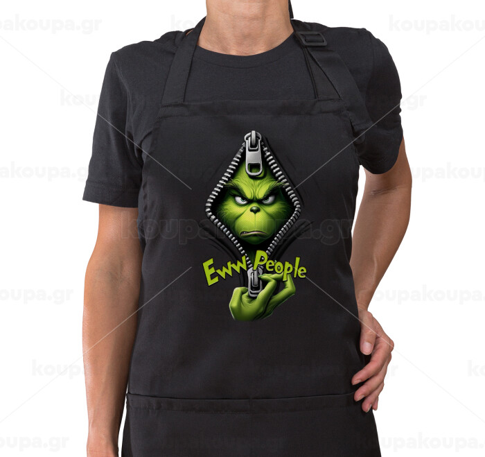 Grinch, eww people, Ποδιά μακριά Σεφ ολόσωμη με τσέπες Μαύρη (ΕΝΗΛΙΚΩΝ)