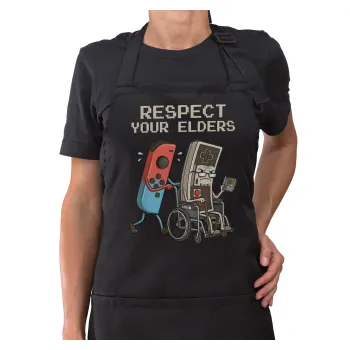 Respect your Elders, Ποδιά μακριά Σεφ ολόσωμη με τσέπες Μαύρη (ΕΝΗΛΙΚΩΝ)