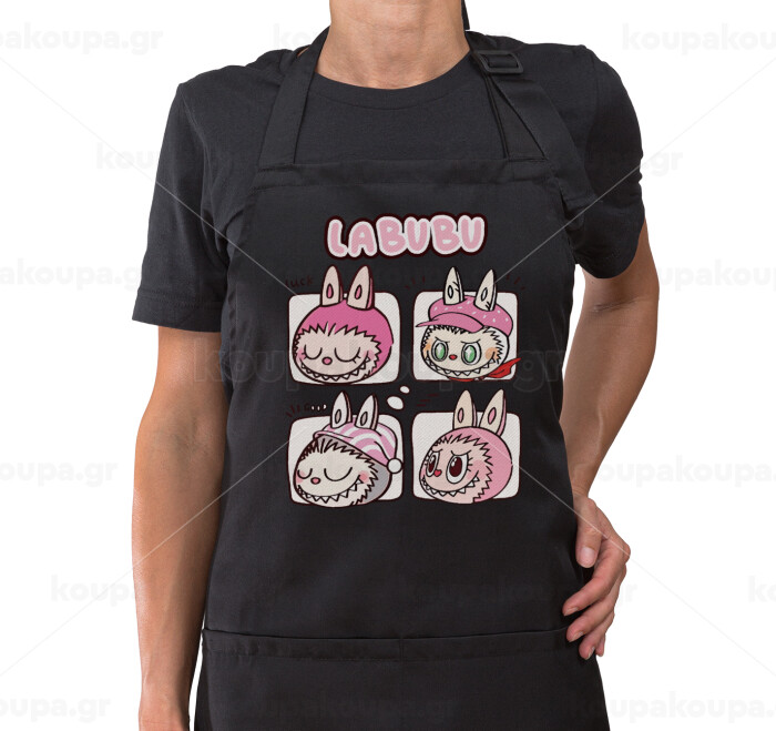 Labubu pink, Ποδιά μακριά Σεφ ολόσωμη με τσέπες Μαύρη (ΕΝΗΛΙΚΩΝ)
