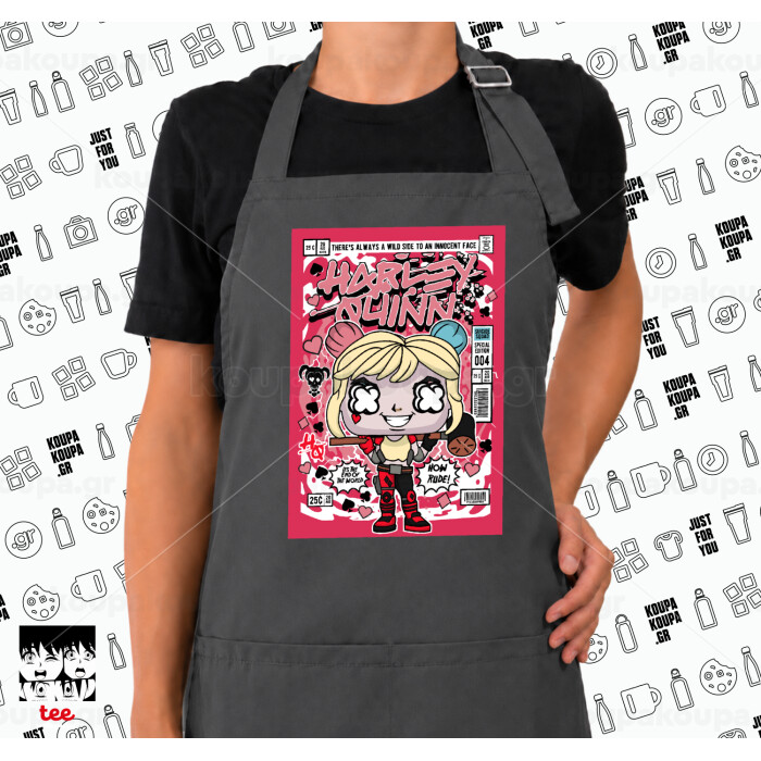 Harley Quinn (Χάρλεϊ Κουίν), Ποδιά μακριά Σεφ ολόσωμη με τσέπες GREY (ΕΝΗΛΙΚΩΝ)
