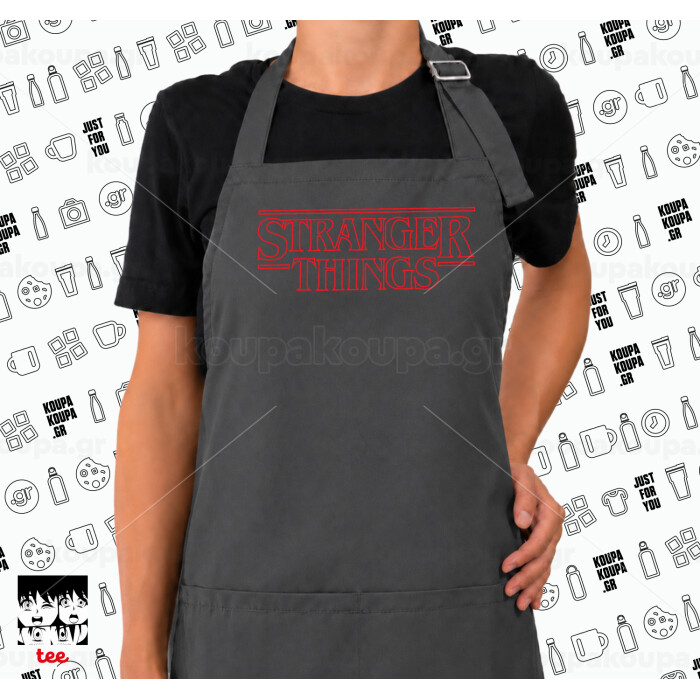 Stranger Things Logo, Ποδιά μακριά Σεφ ολόσωμη με τσέπες GREY (ΕΝΗΛΙΚΩΝ)