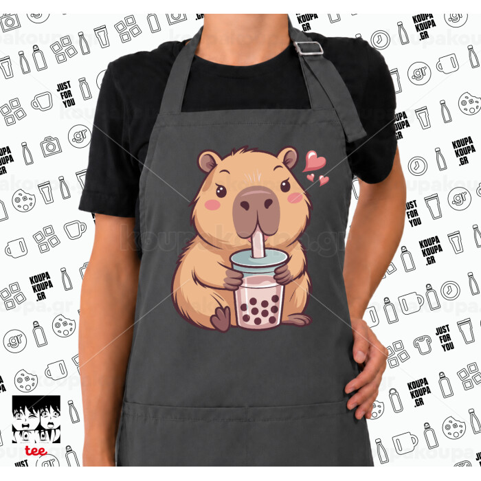 Capybara Bubble Tea, Ποδιά μακριά Σεφ ολόσωμη με τσέπες GREY (ΕΝΗΛΙΚΩΝ)