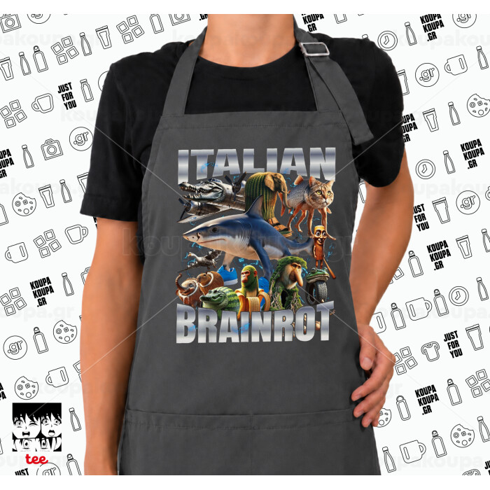 Italian Brainrot, Ποδιά μακριά Σεφ ολόσωμη με τσέπες GREY (ΕΝΗΛΙΚΩΝ)