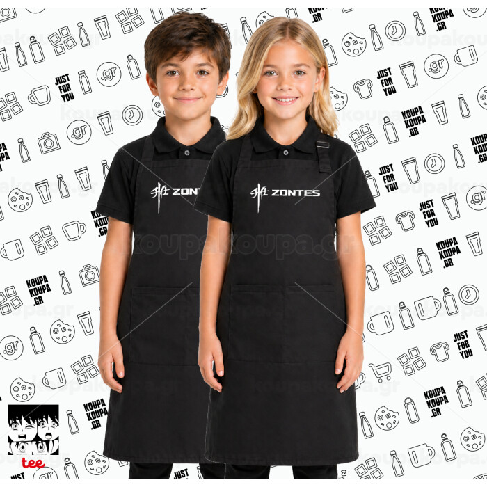 ZONTES, Μαύρη ΠΑΙΔΙΚΗ Ποδιά μακριά Σεφ ολόσωμη με τσέπες