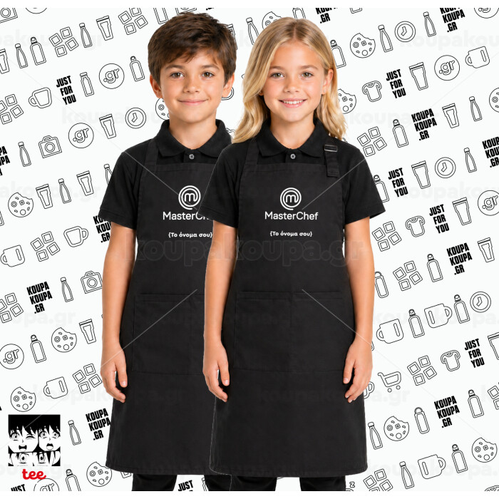 Master Chef Greece, Μαύρη ΠΑΙΔΙΚΗ Ποδιά μακριά Σεφ ολόσωμη με τσέπες
