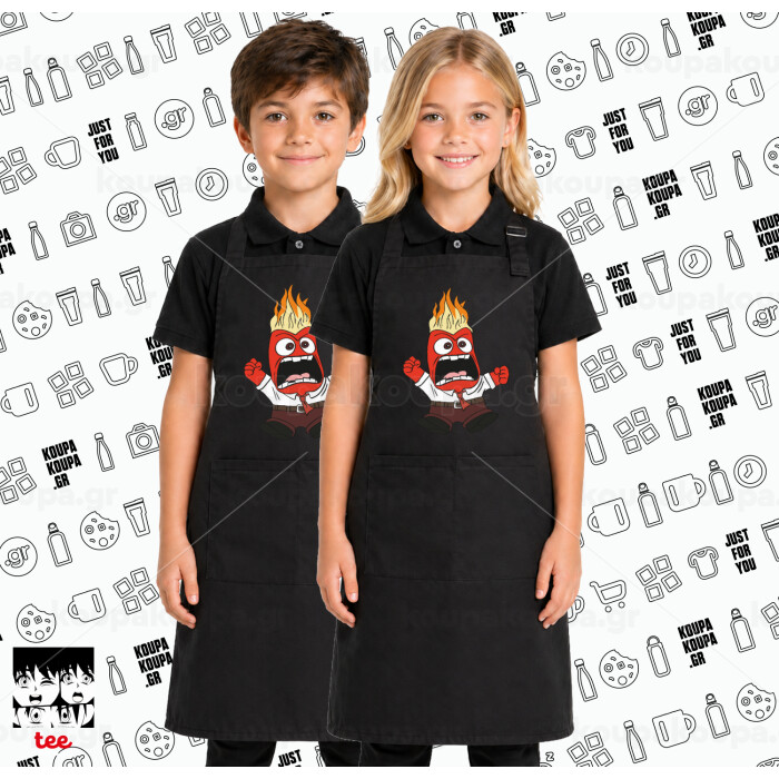 Inside Out θυμός, Μαύρη ΠΑΙΔΙΚΗ Ποδιά μακριά Σεφ ολόσωμη με τσέπες