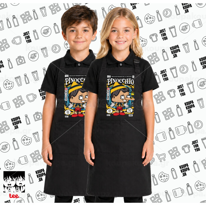 Pinocchio, Μαύρη ΠΑΙΔΙΚΗ Ποδιά μακριά Σεφ ολόσωμη με τσέπες