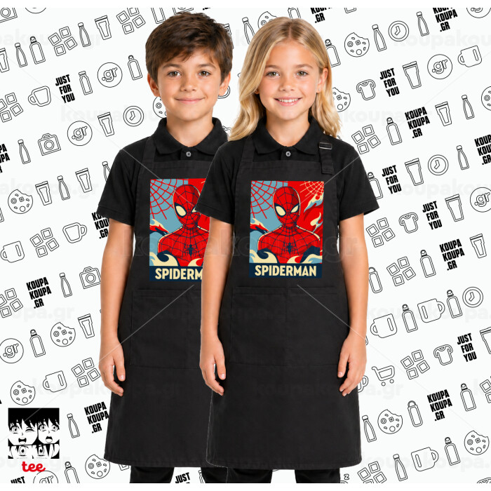 Spiderman kid, Μαύρη ΠΑΙΔΙΚΗ Ποδιά μακριά Σεφ ολόσωμη με τσέπες