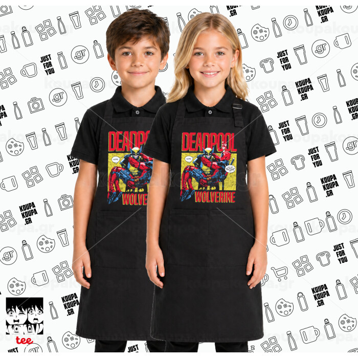 Superhero Deadpool Wolverine, Μαύρη ΠΑΙΔΙΚΗ Ποδιά μακριά Σεφ ολόσωμη με τσέπες