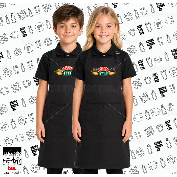 Central perk, Μαύρη ΠΑΙΔΙΚΗ Ποδιά μακριά Σεφ ολόσωμη με τσέπες