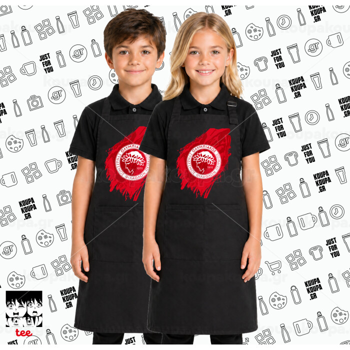 Olympiacos F.C., Μαύρη ΠΑΙΔΙΚΗ Ποδιά μακριά Σεφ ολόσωμη με τσέπες