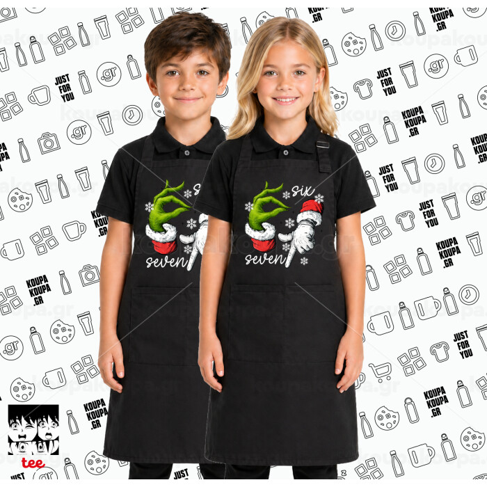 Christmas Meme SIX SEVEN (67), Μαύρη ΠΑΙΔΙΚΗ Ποδιά μακριά Σεφ ολόσωμη με τσέπες