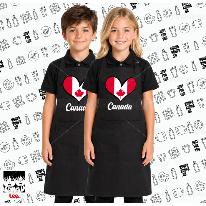 Canada flag, Μαύρη ΠΑΙΔΙΚΗ Ποδιά μακριά Σεφ ολόσωμη με τσέπες