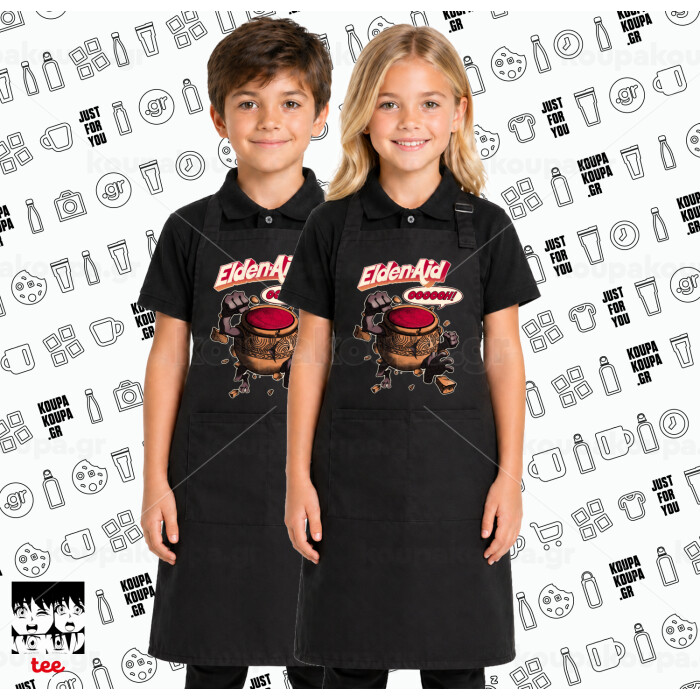 Elden-Aid, Elden Ring inspired , Μαύρη ΠΑΙΔΙΚΗ Ποδιά μακριά Σεφ ολόσωμη με τσέπες