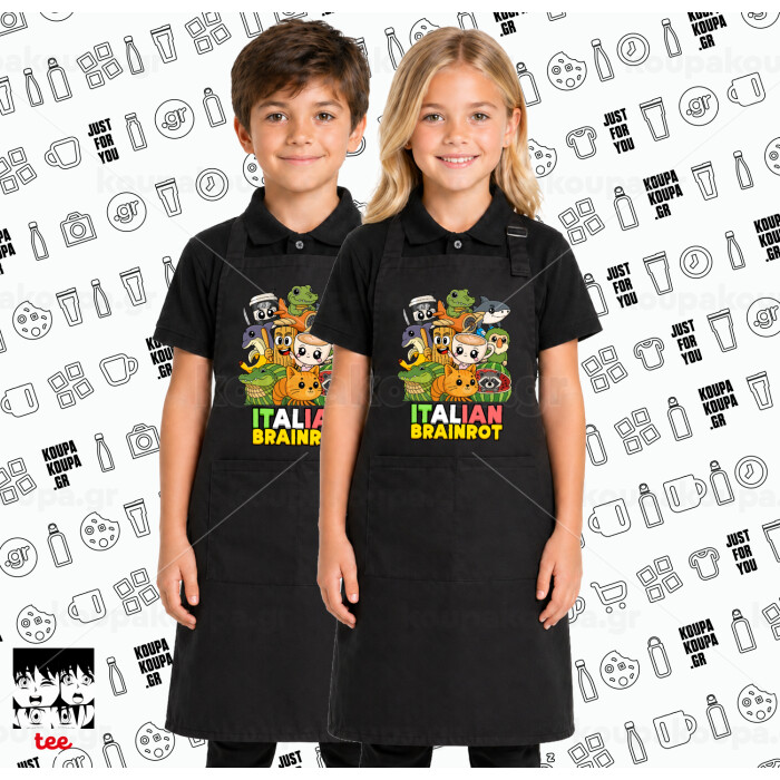 Italian Brainrot friends, Μαύρη ΠΑΙΔΙΚΗ Ποδιά μακριά Σεφ ολόσωμη με τσέπες