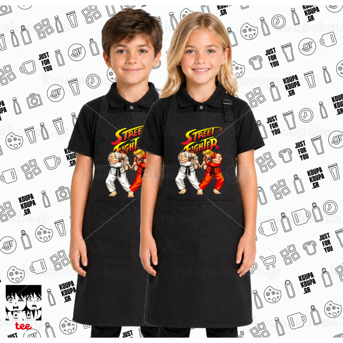 Street fighter, Μαύρη ΠΑΙΔΙΚΗ Ποδιά μακριά Σεφ ολόσωμη με τσέπες
