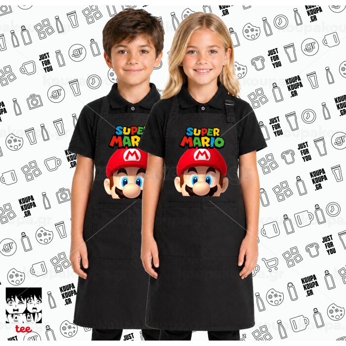 Super mario, Μαύρη ΠΑΙΔΙΚΗ Ποδιά μακριά Σεφ ολόσωμη με τσέπες