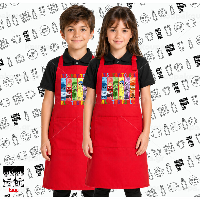Inside Out It's Okay To Feel All The Feels , Κόκκινη ΠΑΙΔΙΚΗ Ποδιά μακριά Σεφ ολόσωμη με τσέπες