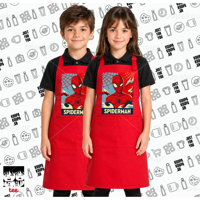 Spiderman kid, Κόκκινη ΠΑΙΔΙΚΗ Ποδιά μακριά Σεφ ολόσωμη με τσέπες
