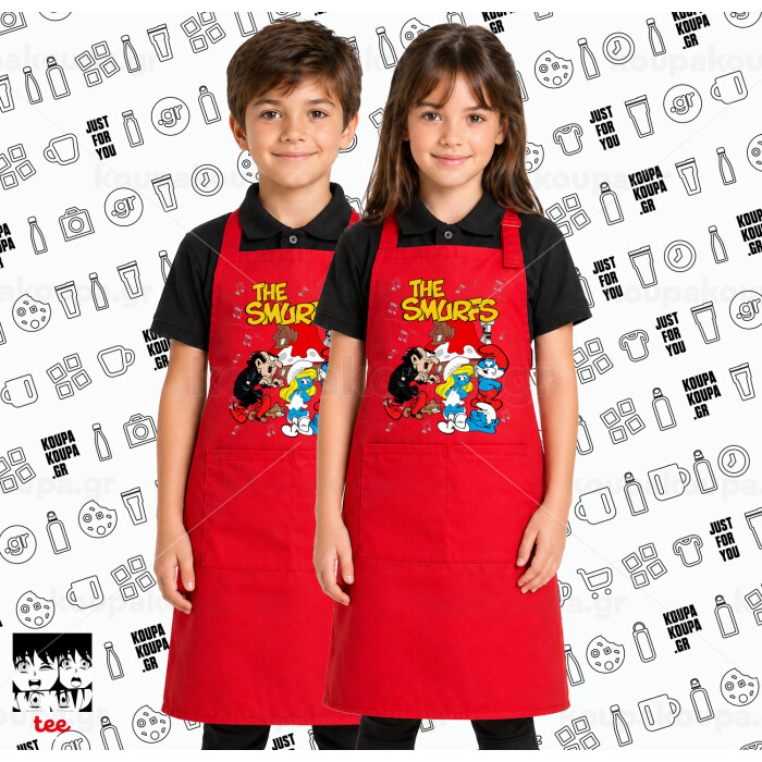 The Smurfs, Κόκκινη ΠΑΙΔΙΚΗ Ποδιά μακριά Σεφ ολόσωμη με τσέπες
