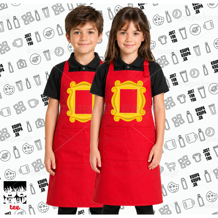 Friends frame, Κόκκινη ΠΑΙΔΙΚΗ Ποδιά μακριά Σεφ ολόσωμη με τσέπες