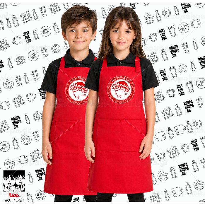 Ολυμπιακός, Κόκκινη ΠΑΙΔΙΚΗ Ποδιά μακριά Σεφ ολόσωμη με τσέπες