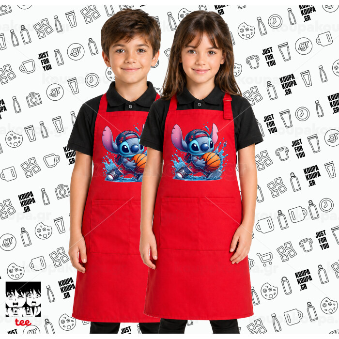 Stitch Basketball, Κόκκινη ΠΑΙΔΙΚΗ Ποδιά μακριά Σεφ ολόσωμη με τσέπες