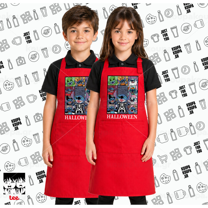 Stitch Halloween, Κόκκινη ΠΑΙΔΙΚΗ Ποδιά μακριά Σεφ ολόσωμη με τσέπες