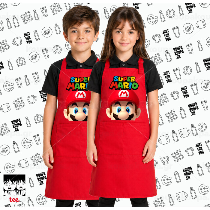 Super mario, Κόκκινη ΠΑΙΔΙΚΗ Ποδιά μακριά Σεφ ολόσωμη με τσέπες