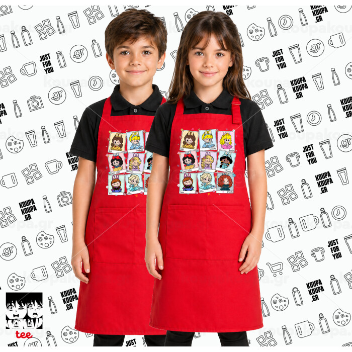 Labubu characters, Κόκκινη ΠΑΙΔΙΚΗ Ποδιά μακριά Σεφ ολόσωμη με τσέπες