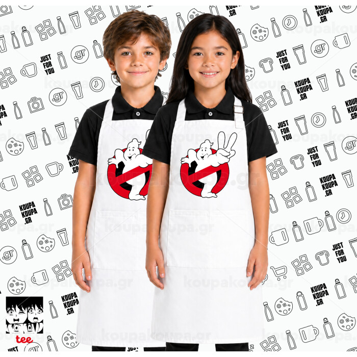 Ghostbusters, Λευκή ΠΑΙΔΙΚΗ Ποδιά μακριά Σεφ ολόσωμη με τσέπες