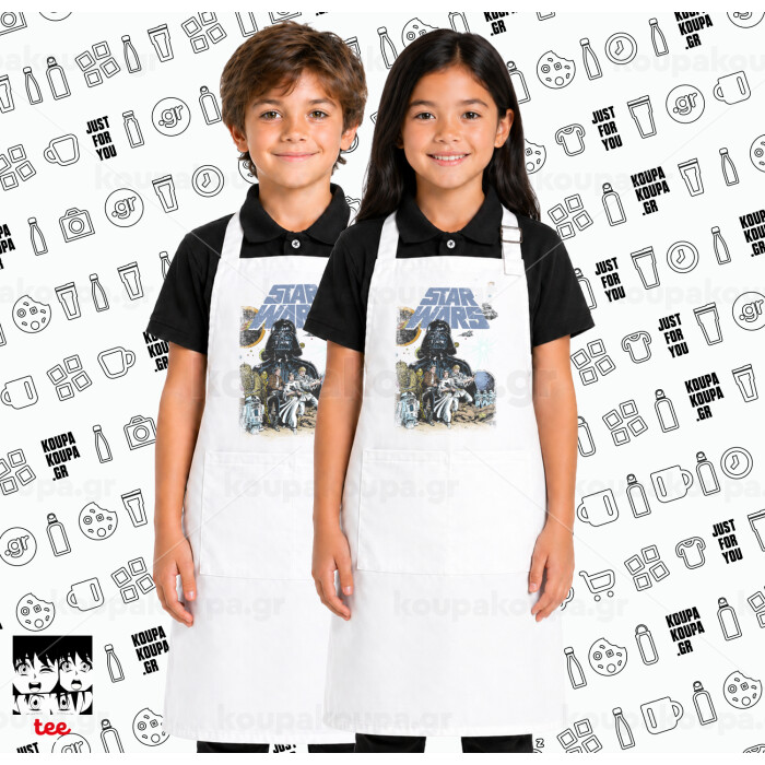 Star Wars, Λευκή ΠΑΙΔΙΚΗ Ποδιά μακριά Σεφ ολόσωμη με τσέπες