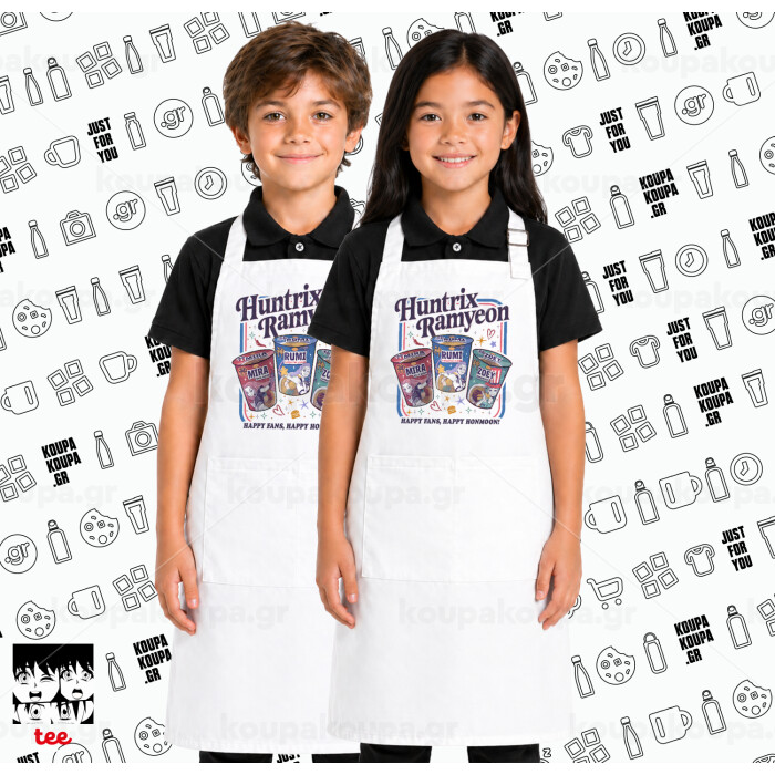 HUNTR/X K-pop girl group, Λευκή ΠΑΙΔΙΚΗ Ποδιά μακριά Σεφ ολόσωμη με τσέπες