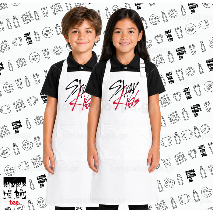 Stray Kids k-pop band, Λευκή ΠΑΙΔΙΚΗ Ποδιά μακριά Σεφ ολόσωμη με τσέπες