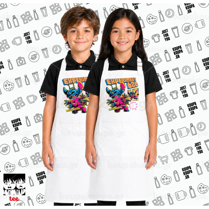 Stitch Experiment 626, Λευκή ΠΑΙΔΙΚΗ Ποδιά μακριά Σεφ ολόσωμη με τσέπες
