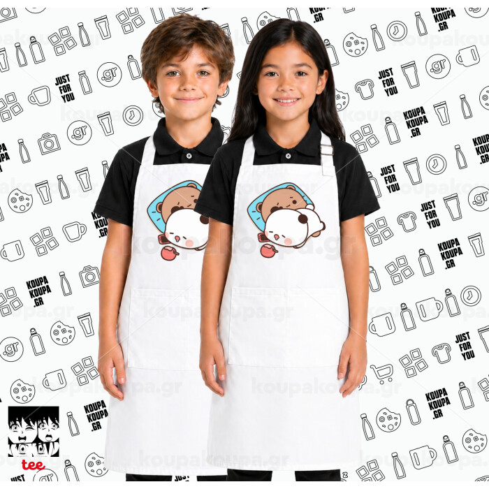 Every Dudu needs a bubu, Λευκή ΠΑΙΔΙΚΗ Ποδιά μακριά Σεφ ολόσωμη με τσέπες