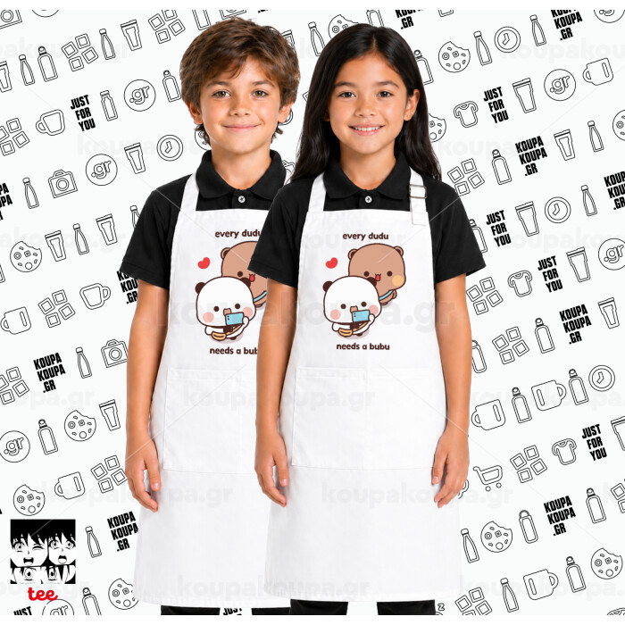 Every Dudu needs a bubu, Λευκή ΠΑΙΔΙΚΗ Ποδιά μακριά Σεφ ολόσωμη με τσέπες
