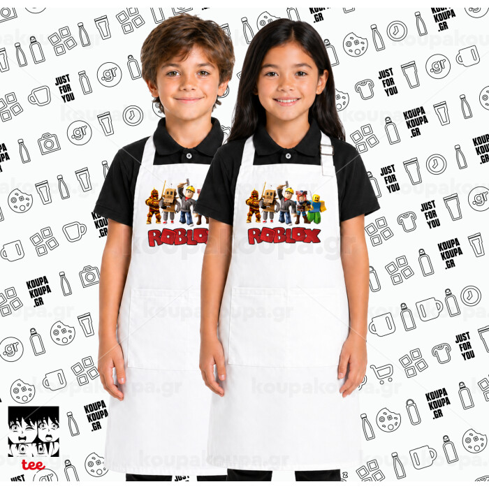 Roblox squad, Λευκή ΠΑΙΔΙΚΗ Ποδιά μακριά Σεφ ολόσωμη με τσέπες