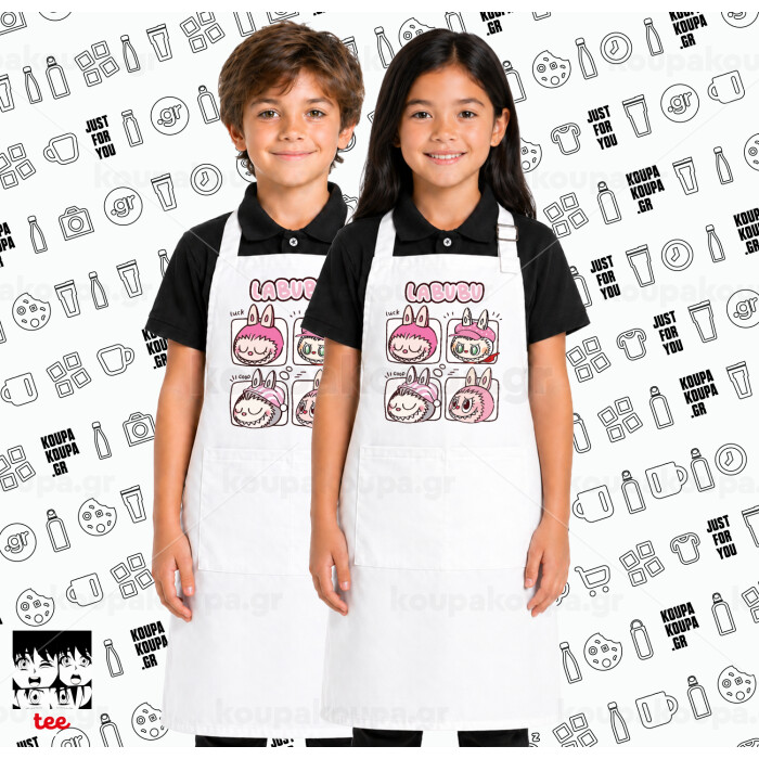Labubu, Λευκή ΠΑΙΔΙΚΗ Ποδιά μακριά Σεφ ολόσωμη με τσέπες