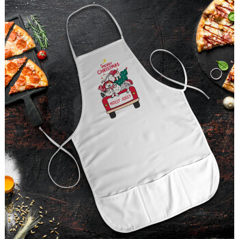 Merry Christmas cats in car, Ποδιά Σεφ / Σερβιτόρου Ολόσωμη κοντή Ενηλίκων με τσέπες (48x73cm)