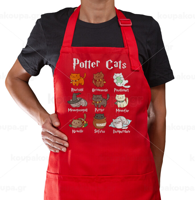 Potter Cats, Ποδιά Μακριά Σεφ ολόσωμη με τσέπες Κόκκινη (ΕΝΗΛΙΚΩΝ)