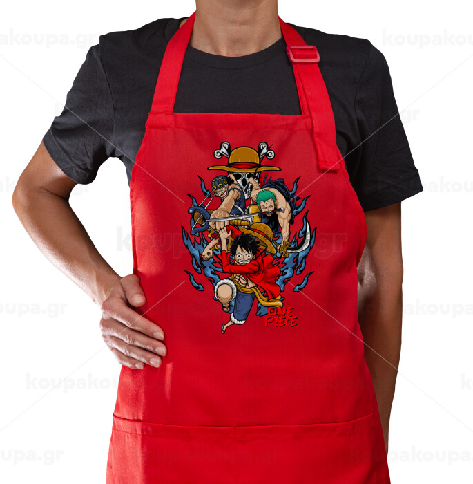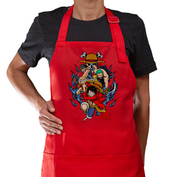 One Piece, Ποδιά Μακριά Σεφ ολόσωμη με τσέπες Κόκκινη (ΕΝΗΛΙΚΩΝ)
