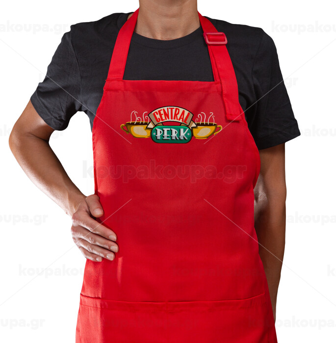 Central perk, Ποδιά Μακριά Σεφ ολόσωμη με τσέπες Κόκκινη (ΕΝΗΛΙΚΩΝ)