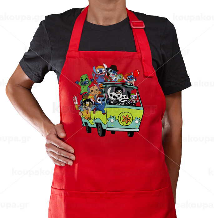 Stitch Halloween scooby car, Ποδιά Μακριά Σεφ ολόσωμη με τσέπες Κόκκινη (ΕΝΗΛΙΚΩΝ)
