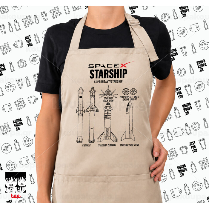 Space X, Ποδιά μακριά Σεφ ολόσωμη με τσέπες SAND (ΕΝΗΛΙΚΩΝ)